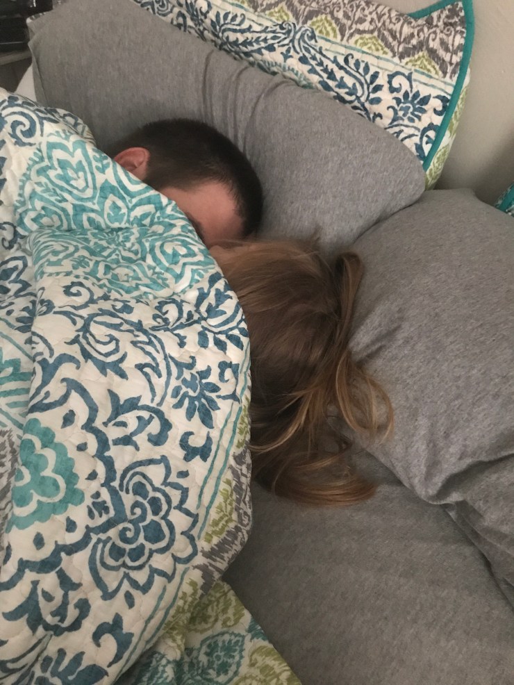 We co-sleep and that’s just how it is… I love having my babies right there and close, they need to feel safe and loved. How can a baby who spent 9 months growing inside me just be expected to sleep all on her own with no warmth but her own? No thank you. We have tried to get Harper to sleep in her own bed, she makes it a few hours before waking up terrified and screaming for us. She gets into our bed and snuggles in and is right back to sleep.