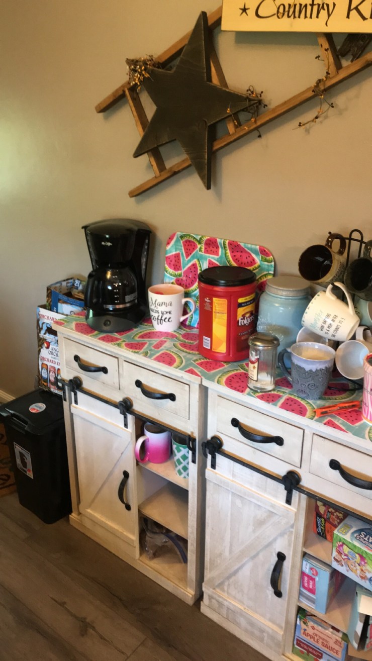 Other then my rustic farm house things I have in my kitchen it’s kind of blah! For the simple fact that I like to rotate my seasons and holidays! I keep it rather cheap and in a budget spending minimal to throw in some nice touches!